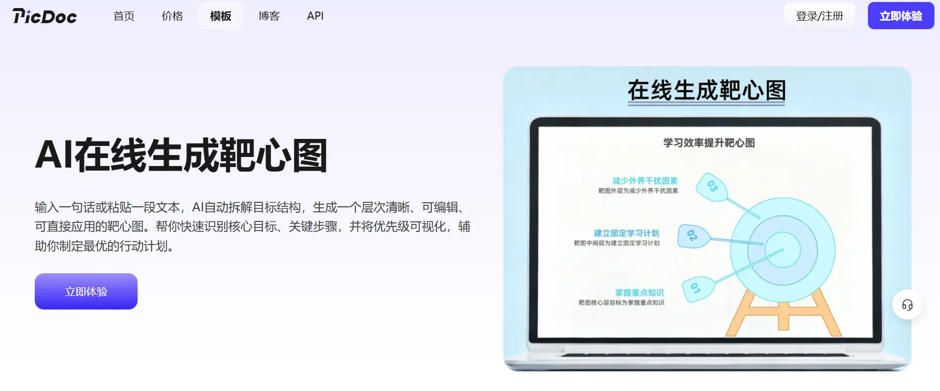 小結(jié):AI生成靶心圖的核心價(jià)值是“降低門檻、提升效率”,不管是新手還是有一定基礎(chǔ)的用戶,借助PicDoc這類AI工具,都能快速產(chǎn)出規(guī)范美觀的靶心圖,滿足職場(chǎng)、教育、創(chuàng)業(yè)等多場(chǎng)景需求。