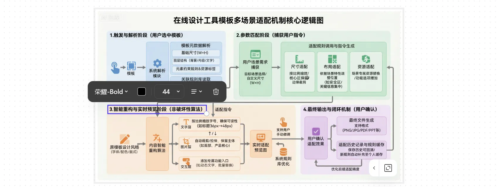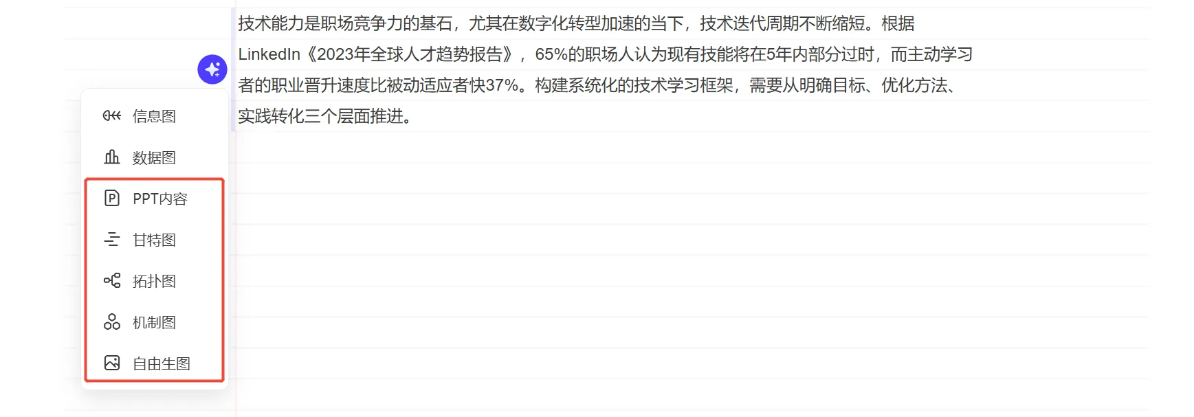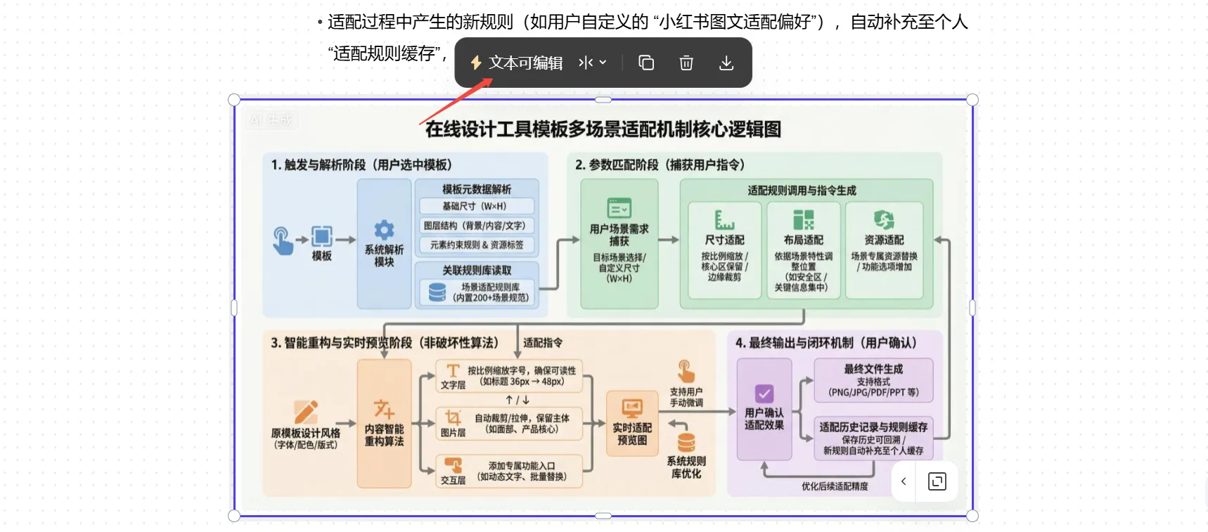 本次功能升級新增了圖表類型自主選擇功能、強化AI生圖功能,生圖結(jié)果支持圖文分離編輯。