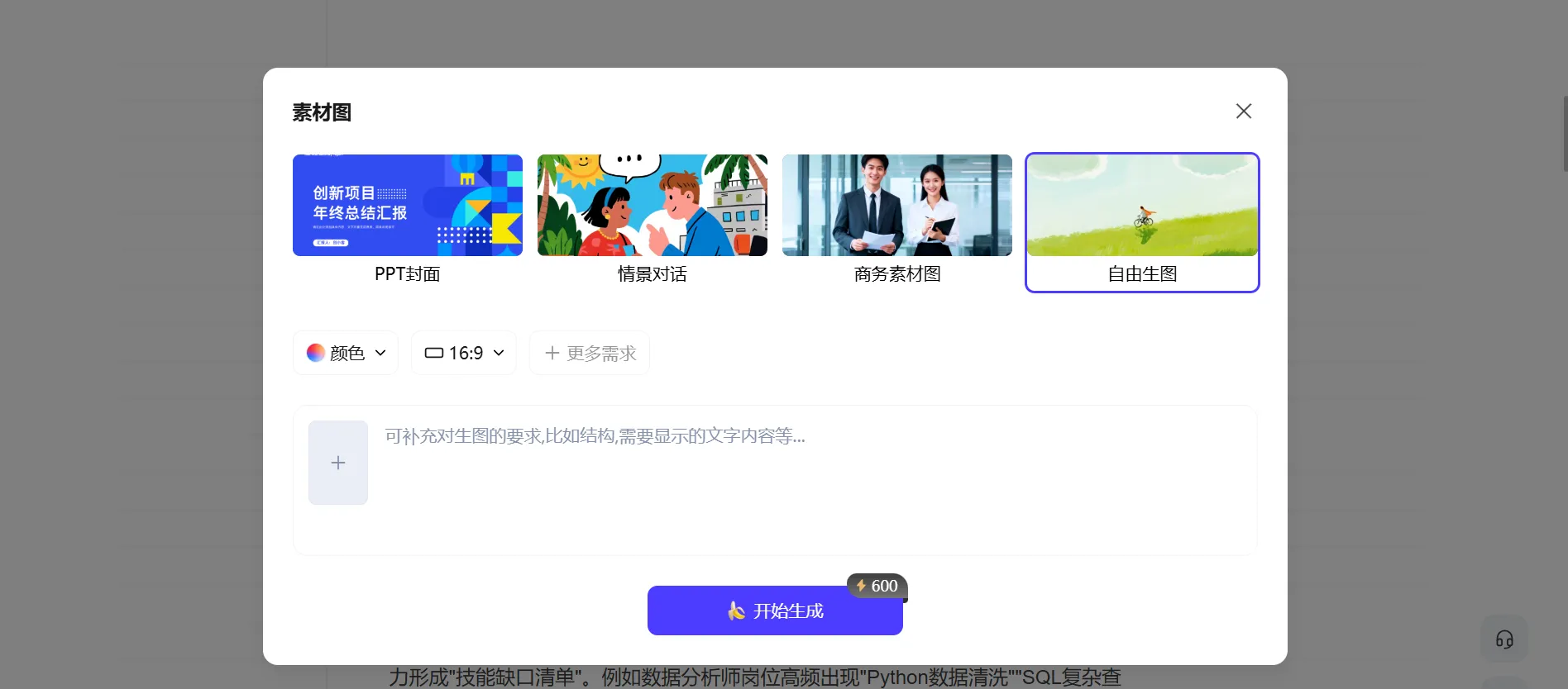 圖表選擇功能解決的是“選什么圖”,而AI生圖能力的強化,解決的則是“選更多圖”。
