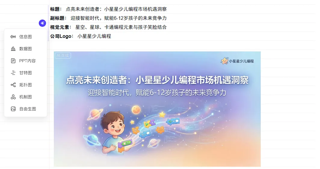 2. 文本直接生成能力:是否支持“輸入/粘貼原始文本后,AI自動識別內(nèi)容邏輯、匹配版式、生成完整PPT單頁”,無需手動搭建版式或填充模板;