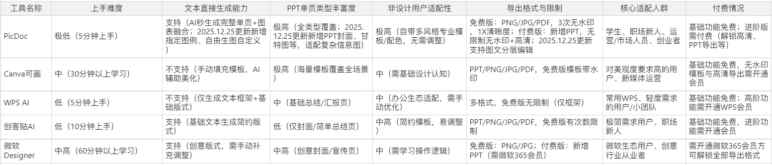 1. 非設(shè)計用戶優(yōu)先選PicDoc,文本直出高效省心;